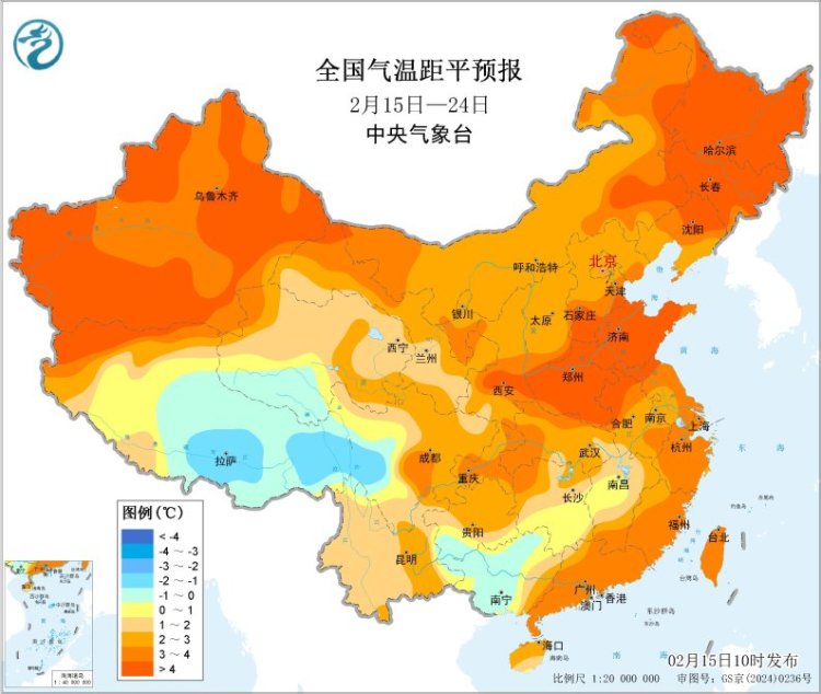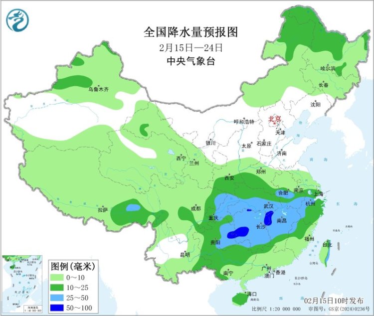 将来10天(2月15-24日),江淮西部、江汉、江南、华南西部和北部、西南地区东部及西藏东南部等地累计降水量有10~30毫米,其中江南北部和西部及贵州东部的部分地区有40~60毫米;新疆北部、西北地区东南部、黄淮西部、东北地区中北部及内蒙古东北部等地降水量有3~8毫米,部分地区逾越10毫米;上述大部地区降水量较终年同时偏多。